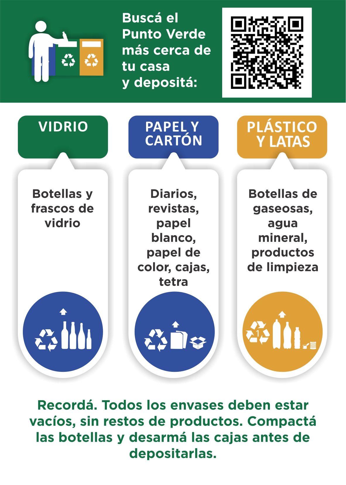 Los puntos verdes de residuos sólidos inorgánicos o secos, actualmente son 130 en el departamento, forman parte de una red de centros de acopio permanente que sirven para desechar la basura seca que separamos en nuestros hogares (vidrio, papel, cartón y plástico).