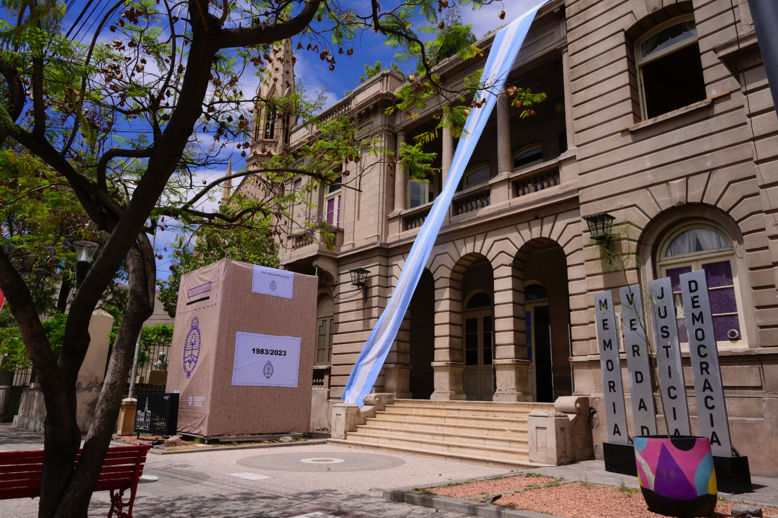A 40 años de la elección que marcó la recuperación de la democracia, la Municipalidad recuerda y pone en valor este hecho transcendental para la historia argentina con dos intervenciones en lugares icónicos del departamento.