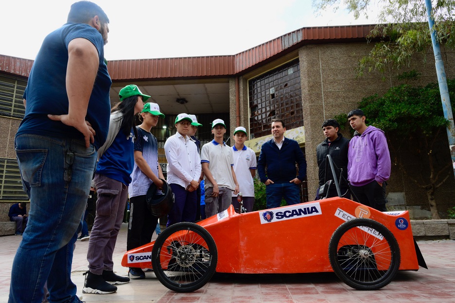 El vehículo, bautizado como Barrilete Cósmico, es eléctrico y fue diseñado y construido por jóvenes de 5° de los sectores Automotriz y Electrónica.
