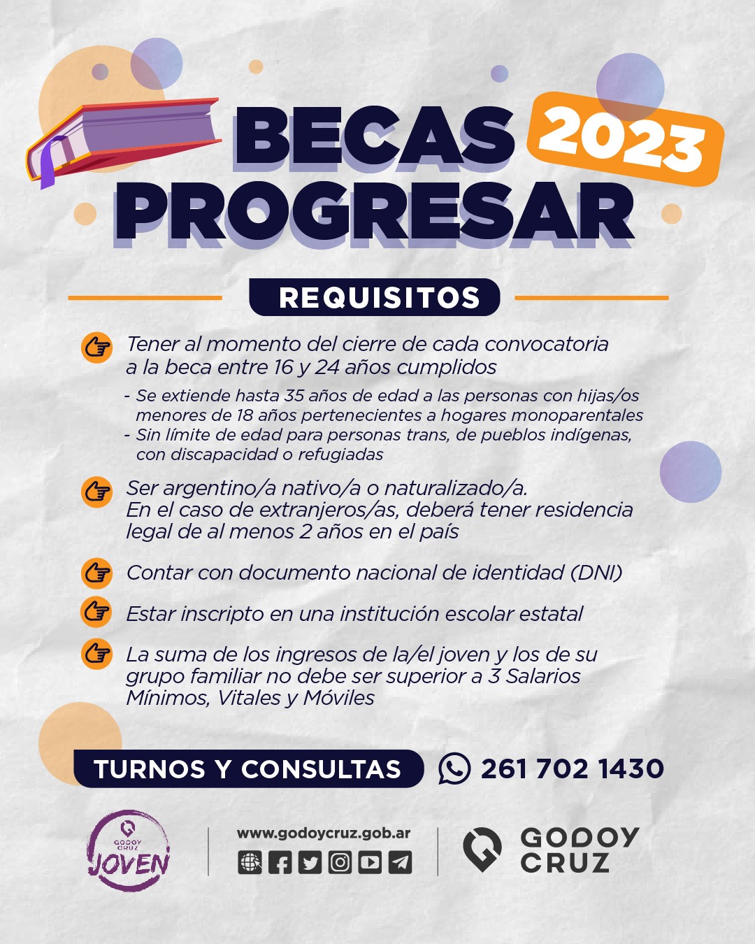 ¿Cómo anotarse? de forma virtual, en argentina.gob.ar/progresar, en la app Progresar o de manera presencial, con turno previo en la oficina del área mencionada, ubicada en Espacio Modo SI (Armani 1800), de lunes a viernes, de 9 a 13.