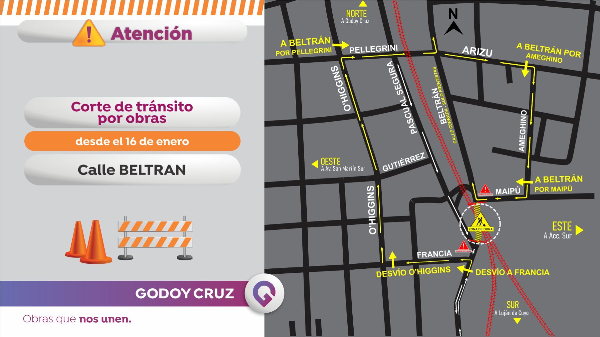 Es importante destacar que quienes circulen por Beltrán de Sur a Norte, deberán doblar por Francia y tomar O´Higgins. Mientras que la circulación por Maipú será normal.