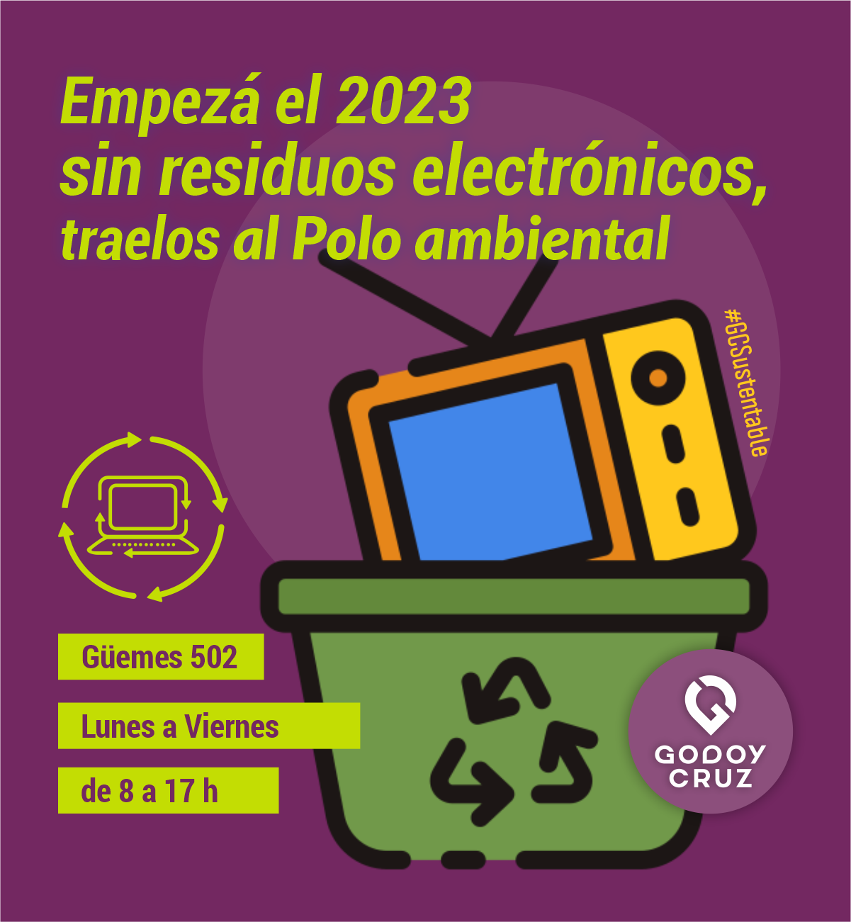 Las empresas que sean parte de la alianza frente al cambio climático podrán disponer de sus residuos eléctricos y electrónicos. Para ello, durante enero y febrero, deben acercarse al Polo Ambiental, de lunes a viernes, de 8 a 17