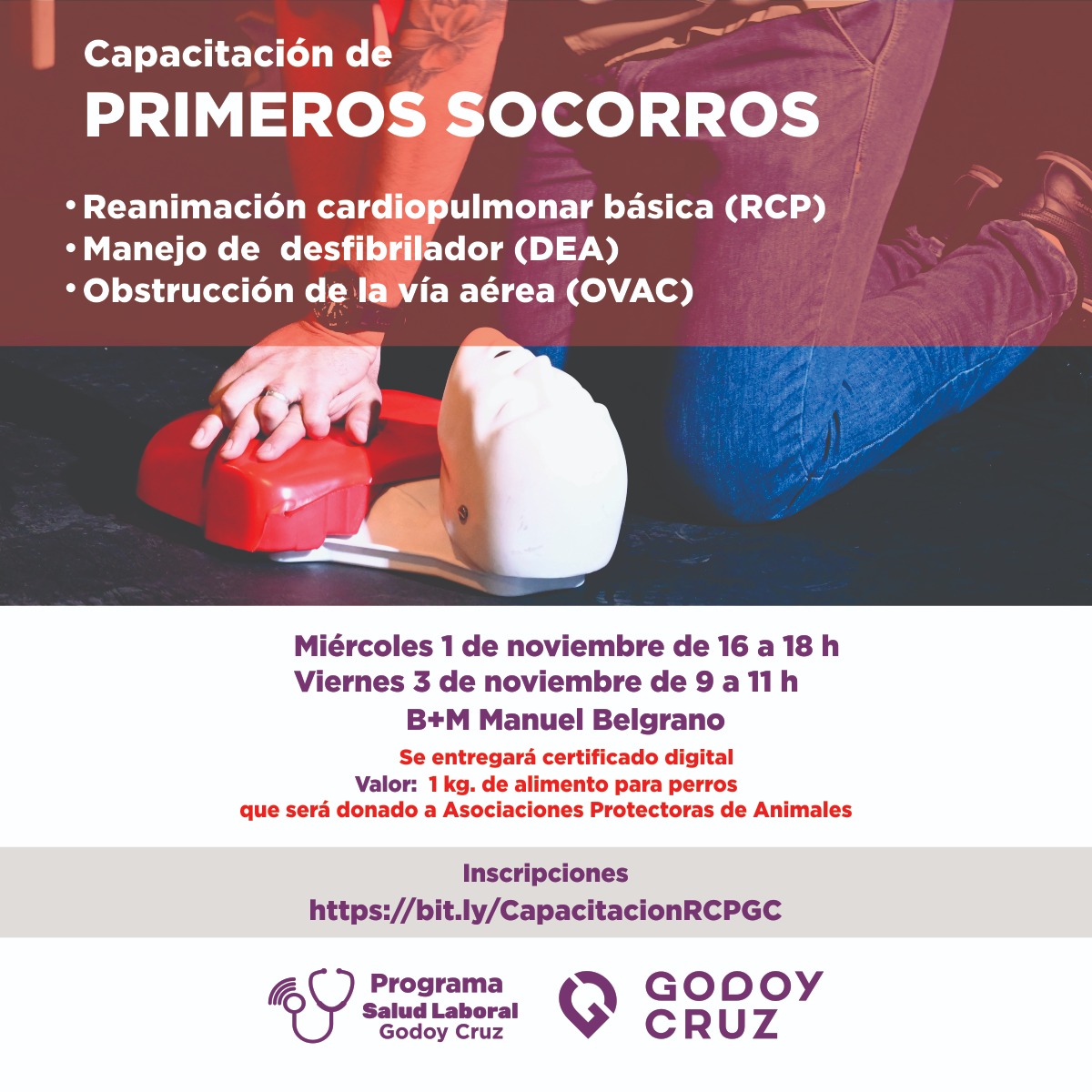El miércoles 1, a las 16, y el viernes 3, a las 9, se realizarán en la Biblioteca capacitaciones de Primeros Socorros. Las mismas son abiertas a todo el público, con inscripción previa y cupos limitados