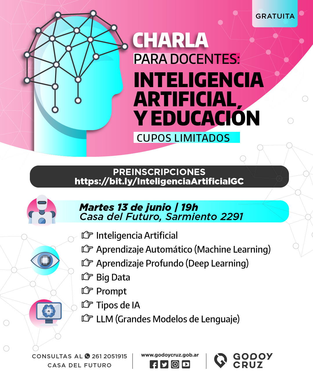 El 13 de junio, a las 19, en Sarmiento 2291, docentes podrán familiarizarse con conceptos básicos sobre inteligencia artificial. Esto, en relación con los desafíos e implicancias de la integración de dichas herramientas en el aula.  También se hará un repaso por el contexto histórico, los desafíos de la IA y el uso crítico y práctico de la tecnología y sus ventajas en la educación.