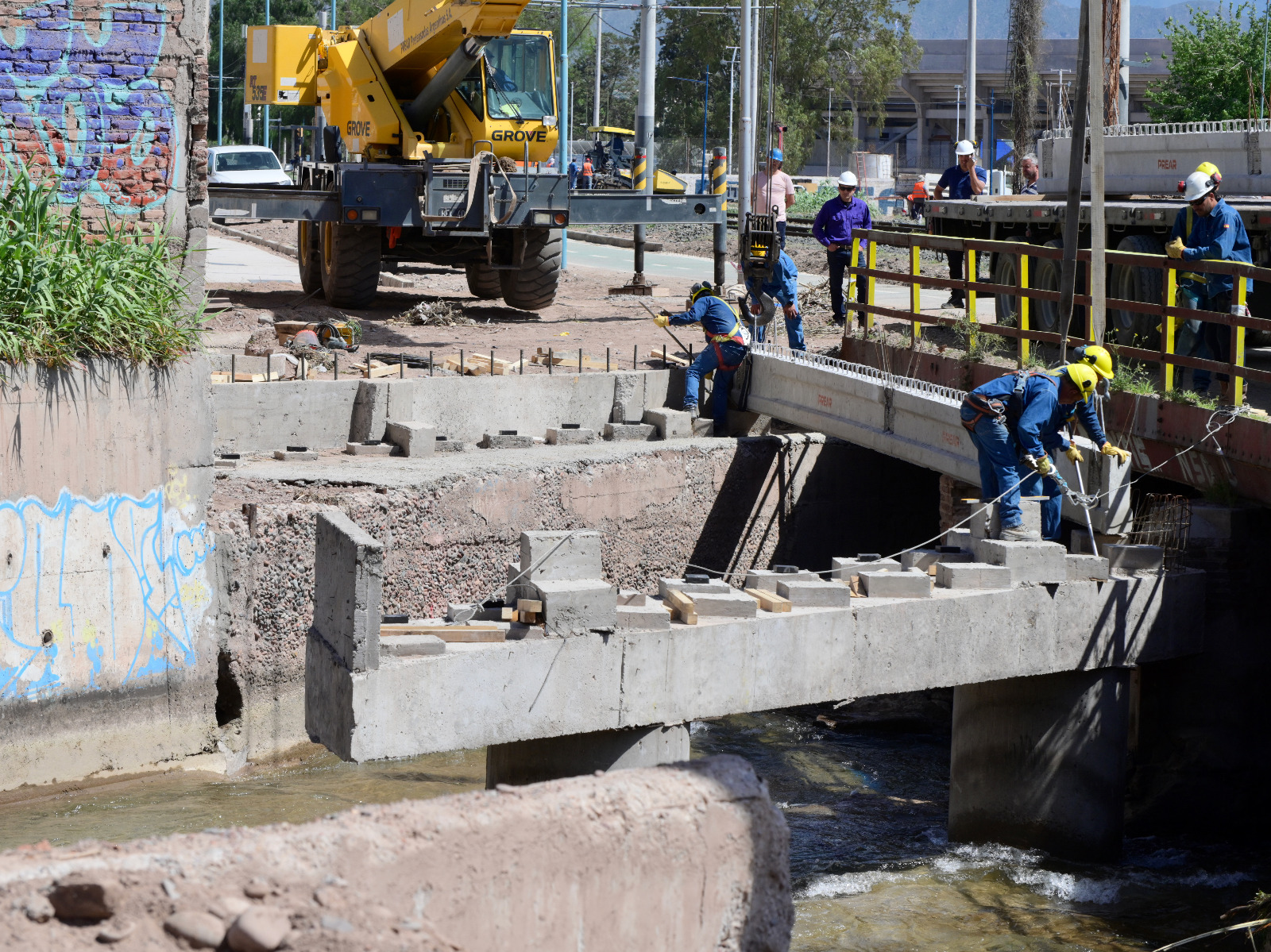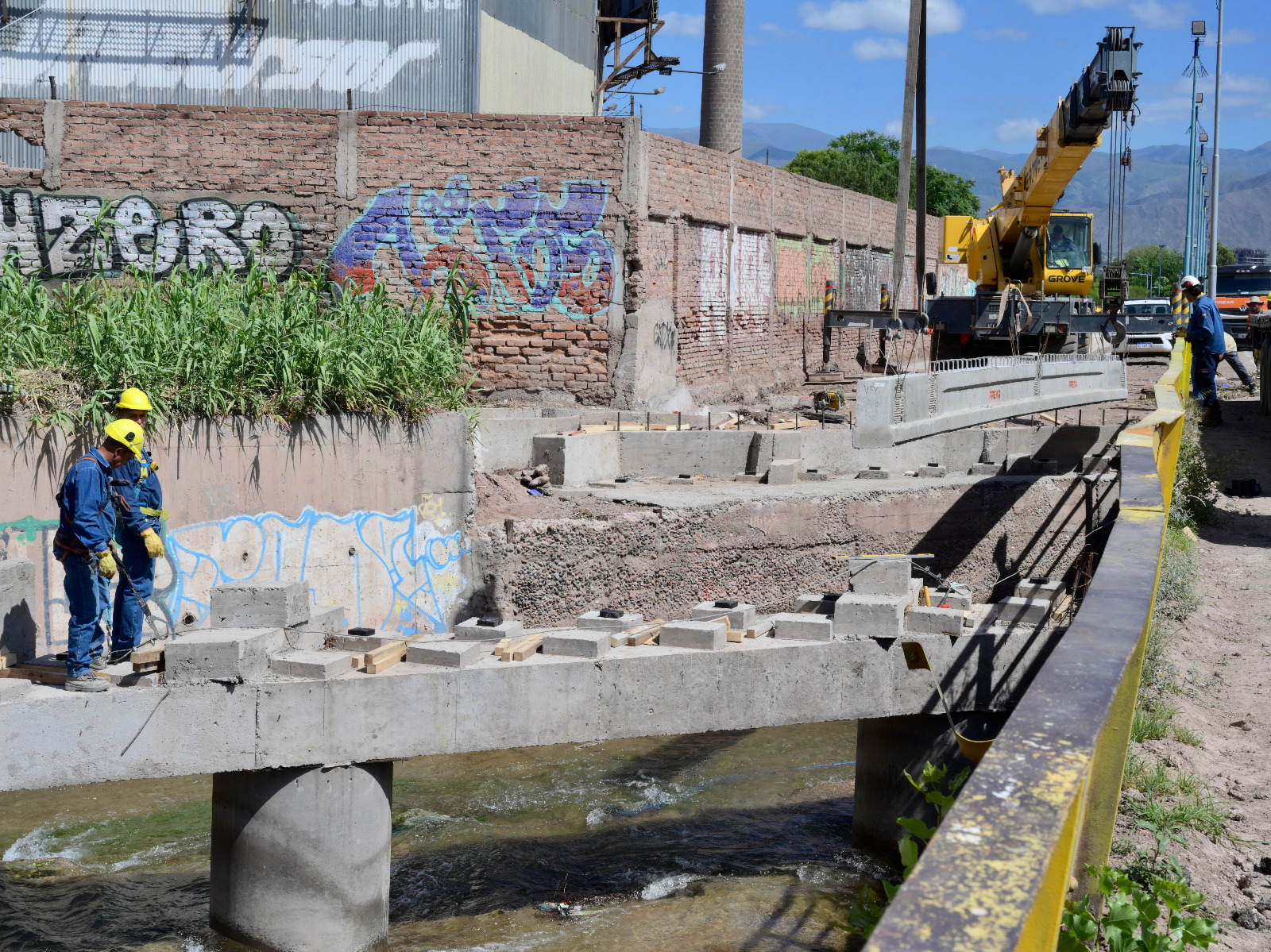 En efecto, ya se montaron dos puentes sobre el canal Maure. Y en esta oportunidad, se montó el que se ubica sobre el canal Cacique Guaymallén.