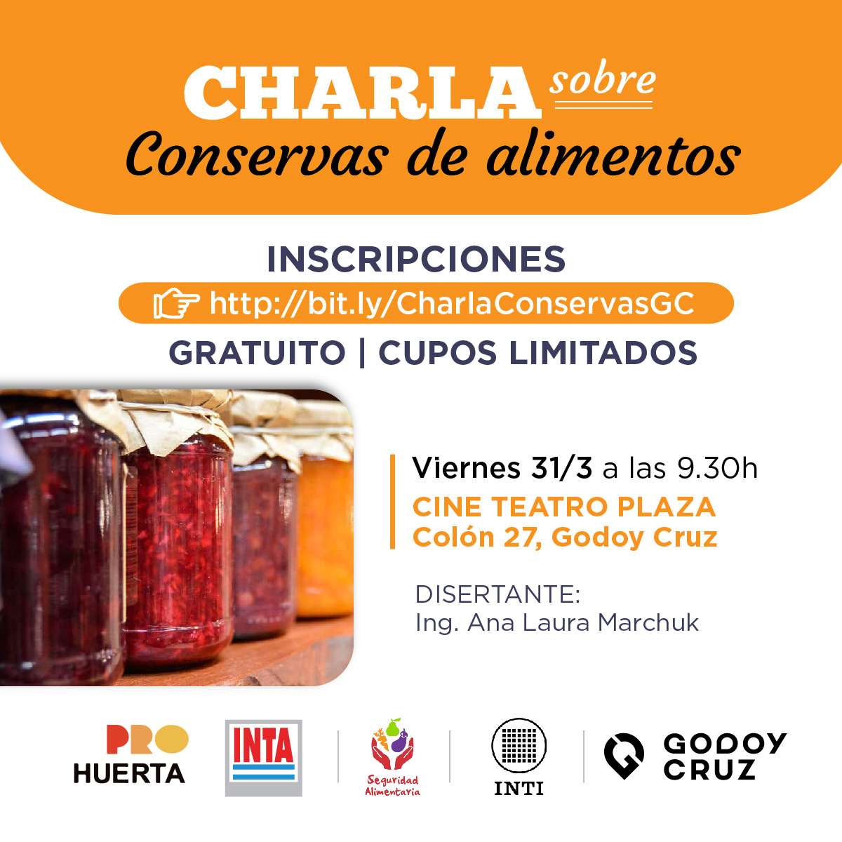 Se realizará el viernes 31, a las 9:30, en el Teatro Plaza. Es por ello que quienes estén interesados deberán inscribirse en Charla ConservasGC
