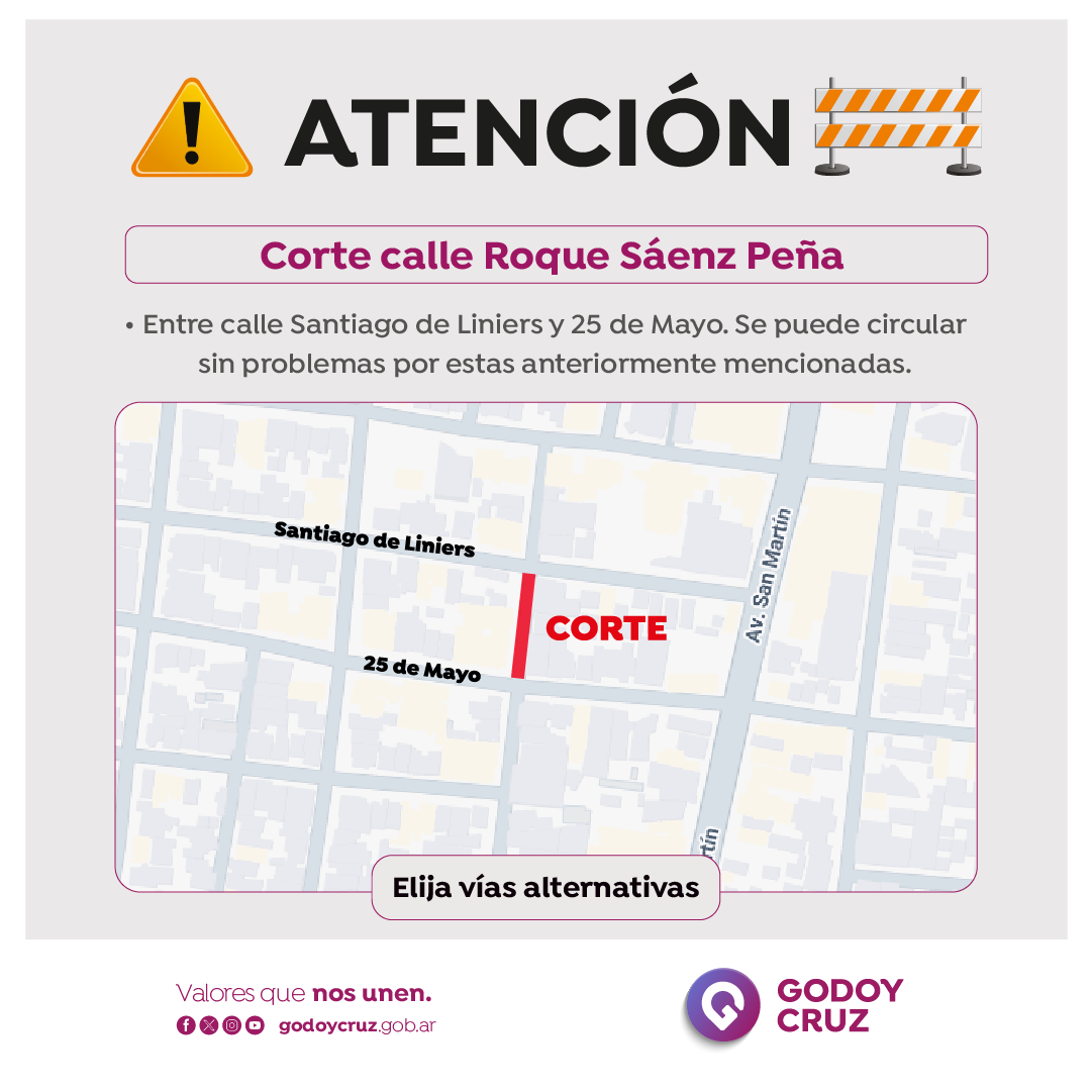 Corte de tránsito por obras en calle Roque Sáenz Peña