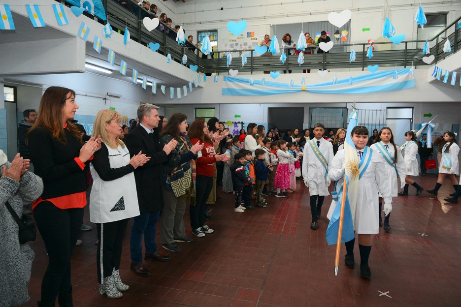 En la mañana de este viernes, en el marco del 214º aniversario de la Revolución de Mayo, el intendente Diego Costarelli participó del acto escolar organizado por la escuela 1-629 Carlos Pellegrini, ubicada en el barrio Atsa. Además, hizo entrega de banderas de flameo nacional y provincial.