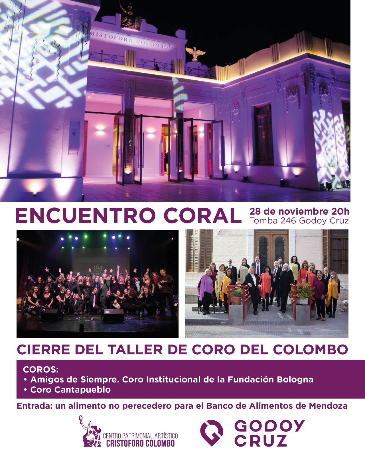 El martes 28, a las 20, se realizará un Encuentro Coral en el Centro Patrimonial ubicado en Tomba 246. Además, la entrada es un alimento no perecedero a beneficio, con cupos limitados
