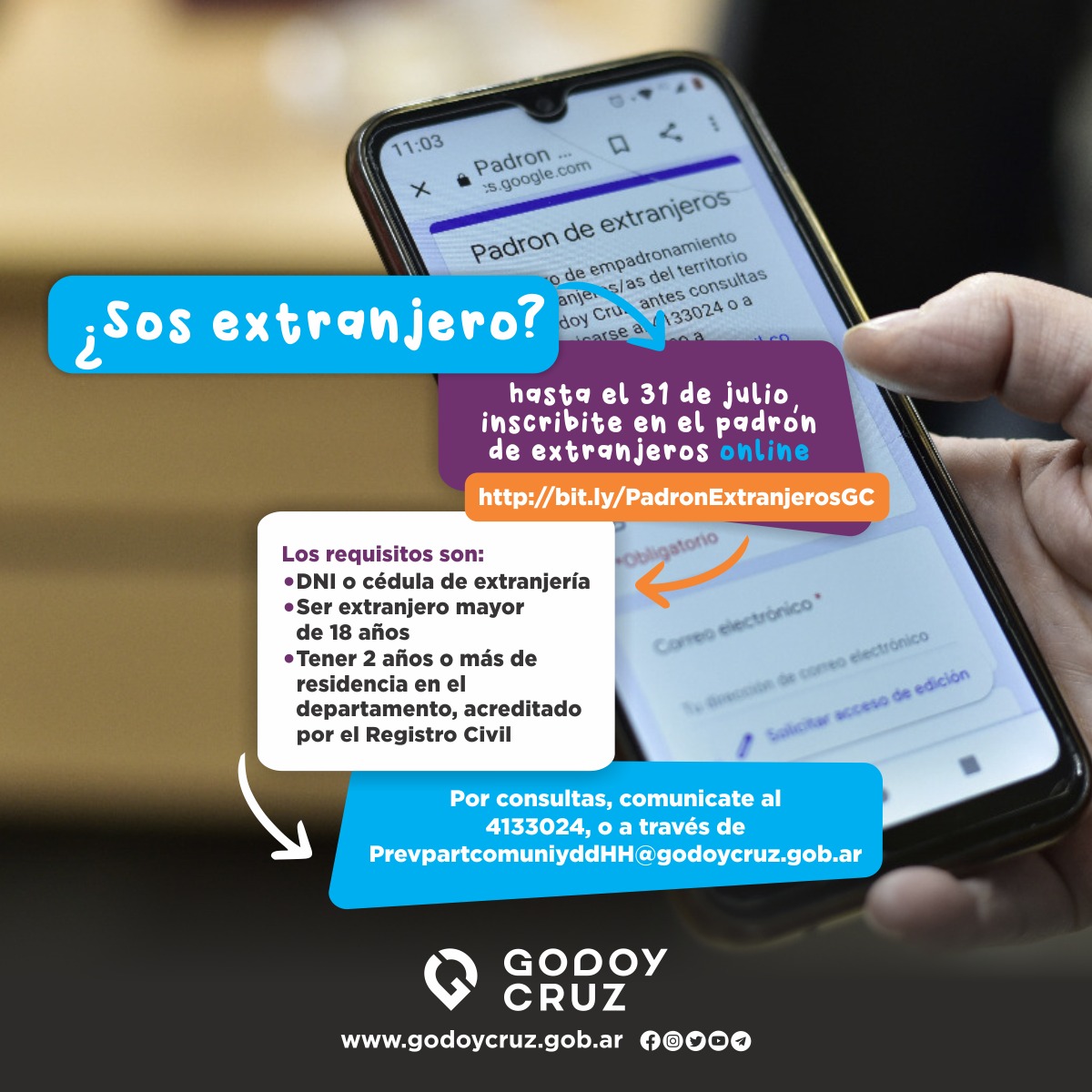 Por dudas o consultas, comunicarse al 4133024, o a través de PrevpartcomuniyddHH@godoycruz.gob.ar