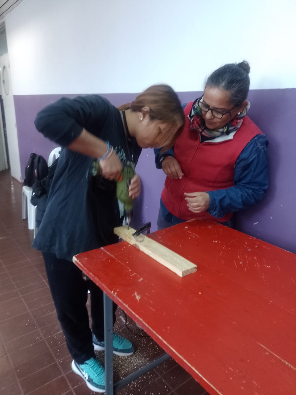 En esta nueva experiencia seis estudiantes realizan sus prácticas en el taller de carpintería básica. El mismo se dicta en el Poli N°3 Padre Jorge Contreras