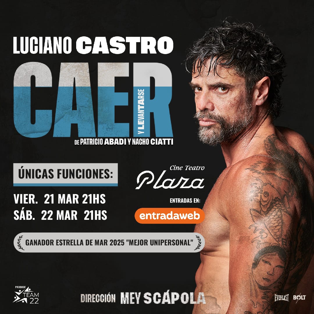 Las entradas se pueden obtener vía online en https://bit.ly/EntradasLucianoCastro o en la boletería del teatro (Colón 27, Godoy Cruz), de lunes a viernes de 9 a 14hs.