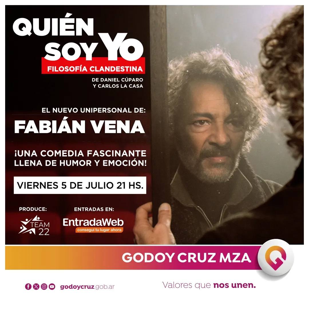 Las entradas se pueden obtener vía online en https://bit.ly/UnipersonalFabiánVena o en la boletería del teatro (Colón 27, Godoy Cruz), de lunes a viernes de 9 a 15hs.
