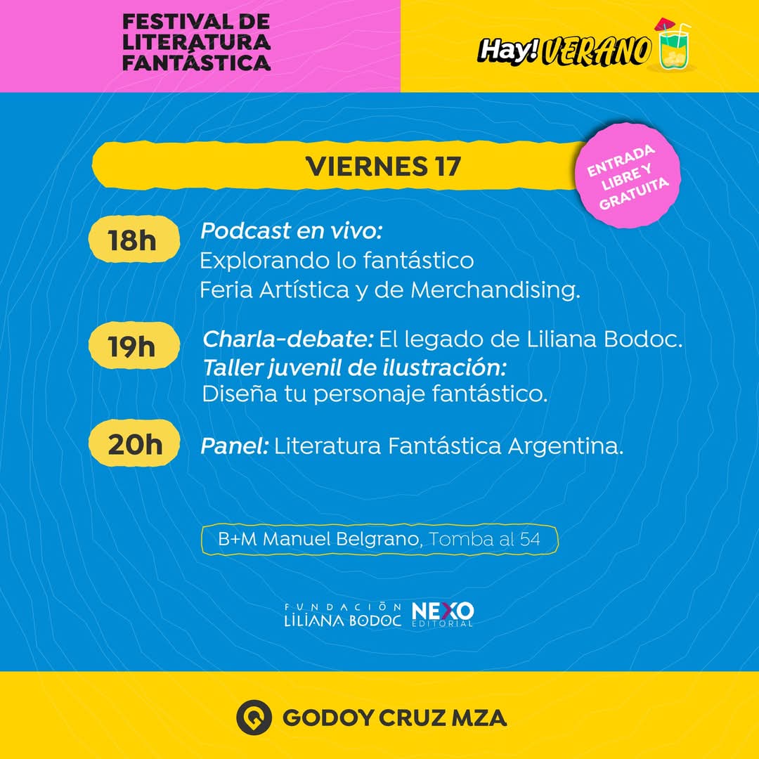 19hs: Charla – debate: “El legado de Liliana Bodoc”, con la participación de la fundación Bodoc.