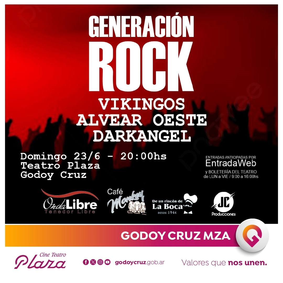 Las entradas se pueden obtener vía online en https://bit.ly/EntradasGeneraciónRock o en la boletería del teatro (Colón 27, Godoy Cruz), de lunes a viernes de 9 a 15hs.