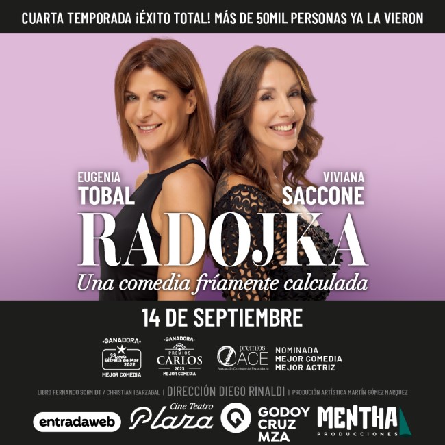 Las entradas se pueden obtener vía online en https://bit.ly/EntradasRadojka2024 o en la boletería del teatro (Colón 27, Godoy Cruz), de lunes a viernes de 9 a 15hs.