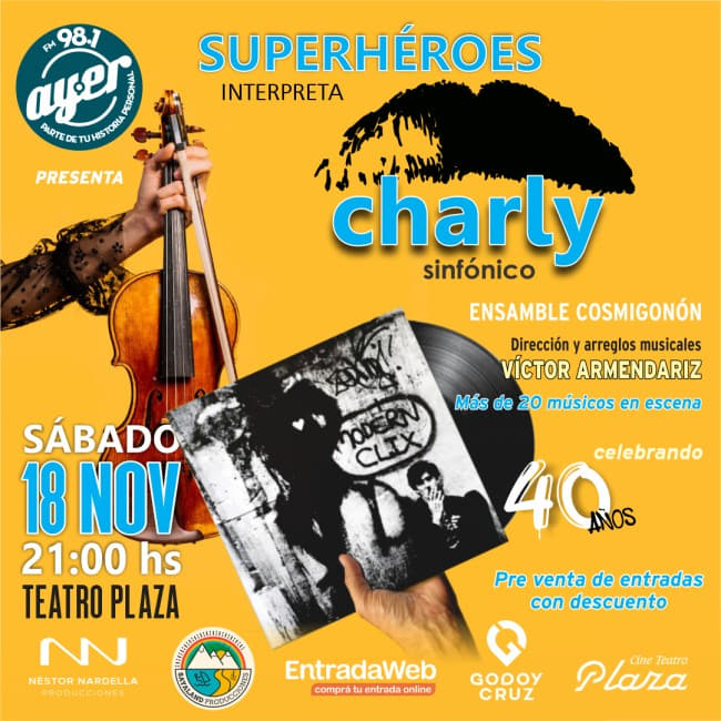 Comprá tus entradas online en https://bit.ly/CharlySinfonico o en la boletería del teatro (solo efectivo), de lunes a sábado de 9 a 18 hs.