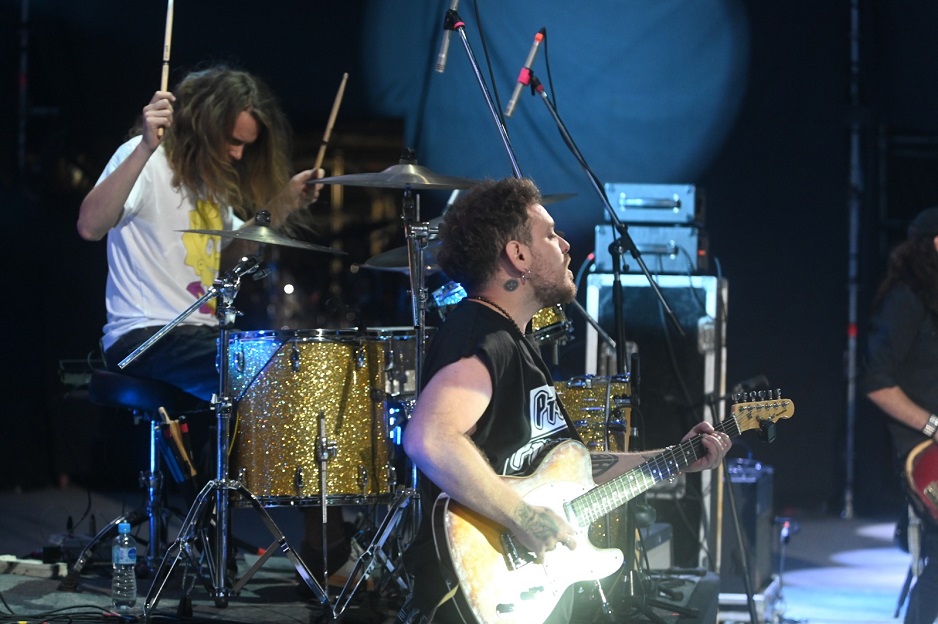 La primera banda de la tarde está integrada por Lucas Marcello, Guillermo Gómez Ricco, Hernán Ramiro Alonso, Leo Quirós, Ariel Longuín, y Adrián Chirizzi.