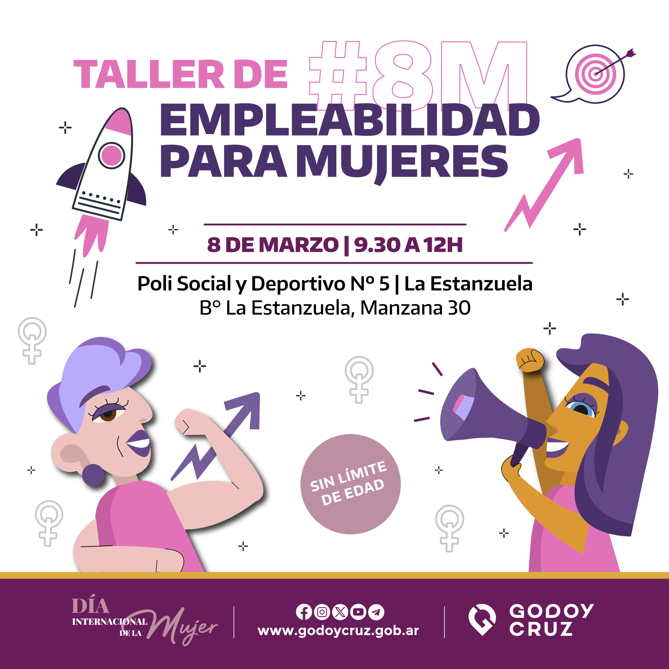 En conmemoración del Día Internacional de la Mujer trabajadora, se llevará a cabo un taller de empleabilidad. El mismo se realizará el 8 de marzo, de 9:30 a 12, en el Poli Social y Deportivo Nº 5, del barrio La Estanzuela.