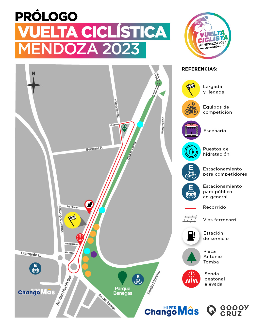 La largada de cada manga se desarrollará sobre la vía oeste de Panamericana. De ahí se dirigirán al sur hasta Panamericana y Misiones donde los ciclistas girarán en sentido norte y retomarán por Panamericana hasta la rotonda del Trabajo (Chango Más).