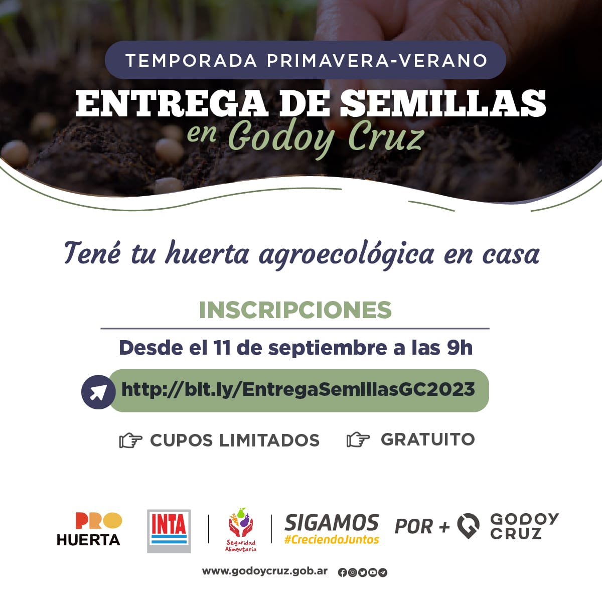 La inscripción se abre el lunes 11 hasta agotar cupo. Luego de completar el formulario, llegará un mail indicando día, lugar y horarios para retirar el kit de semillas.