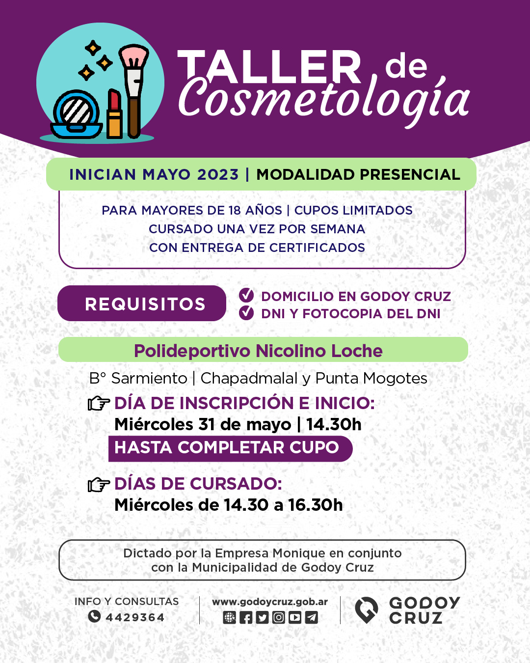 Es por eso que la capacitación es para personas mayores de 18 años y gratuita. Por su parte, la dictará la empresa Monique, una vez por semana durante dos meses. Quienes deseen capacitarse y emprender, deberán inscribirse el mismo día que comienzan las clases. Es importante asistir con DNI y fotocopia, donde conste el domicilio en Godoy Cruz. Al finalizar el taller, se entregarán certificados.