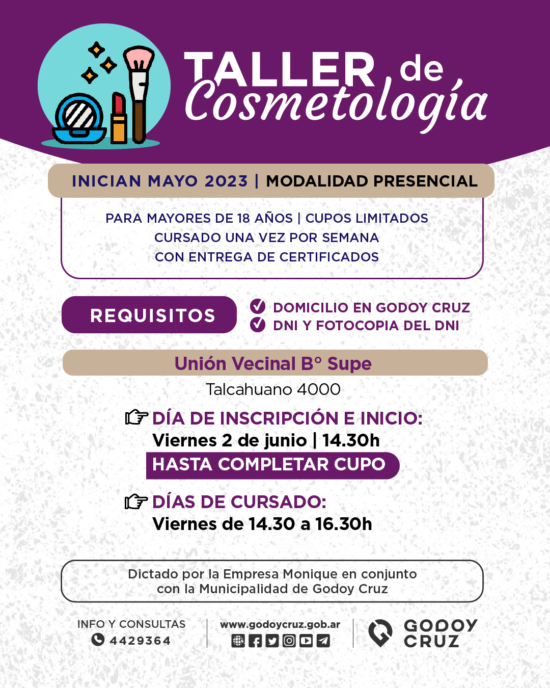 El miércoles 31 iniciará un taller de cosmetología gratuito en distintos lugares del Departamento. Las personas interesadas deberán asistir ese día para inscribirse y comenzar