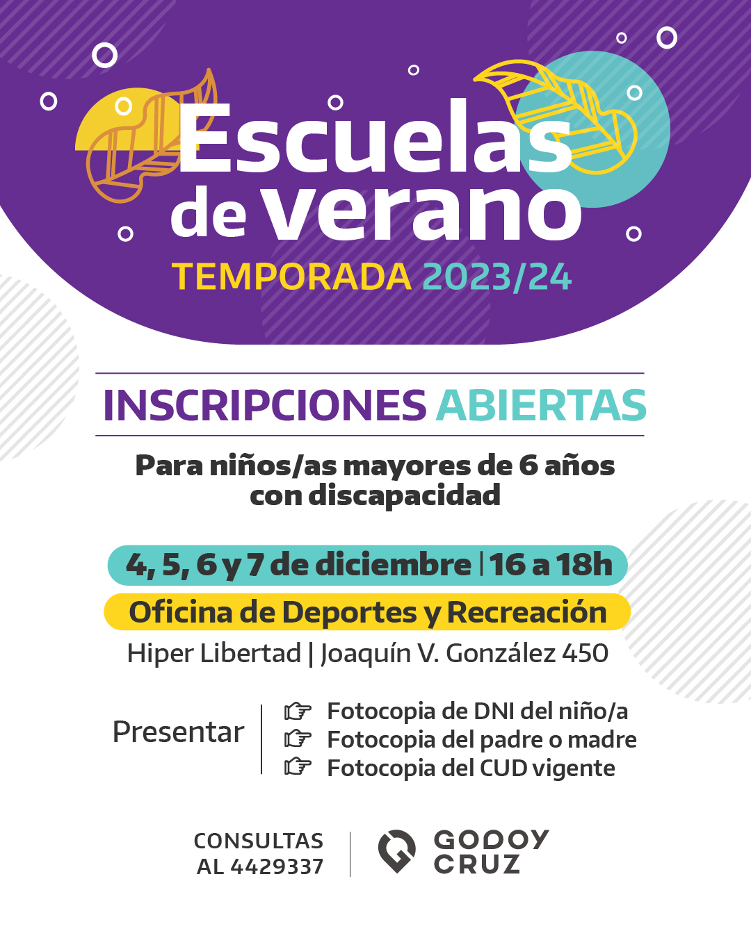 Godoy Cruz abre las inscripciones de las escuelas de verano 2023/24 para personas mayores de 6 años con discapacidad. Por eso, lo harán de manera presencial.
