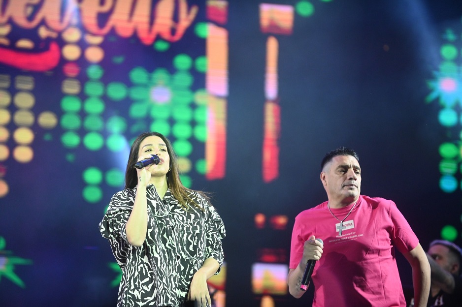Pasada la medianoche, el trío cordobés La K’onga subió al escenario para ofrecer un espectáculo memorable. Con su característico «swing cordobés», Pablo, Nelson y Diego junto a su banda interpretaron un repertorio lleno de éxitos. Canciones como «Hola», «Y cómo es él», «Universo paralelo» y «Secretos, fueron algunos de los temas más coreados de la noche. Así, cautivaron a un público que no dejó de cantar.