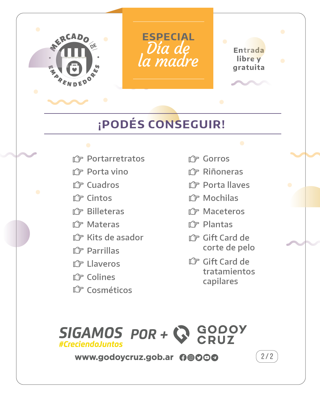 Godoy Cruz se llena de talento local con el Mercado de Emprendedores en honor al día de la madre. La fecha es el jueves 12, a partir de las 9, en el Club Villa Hipódromo
