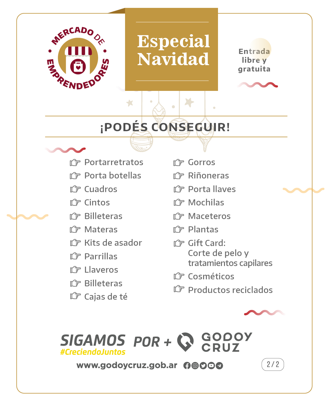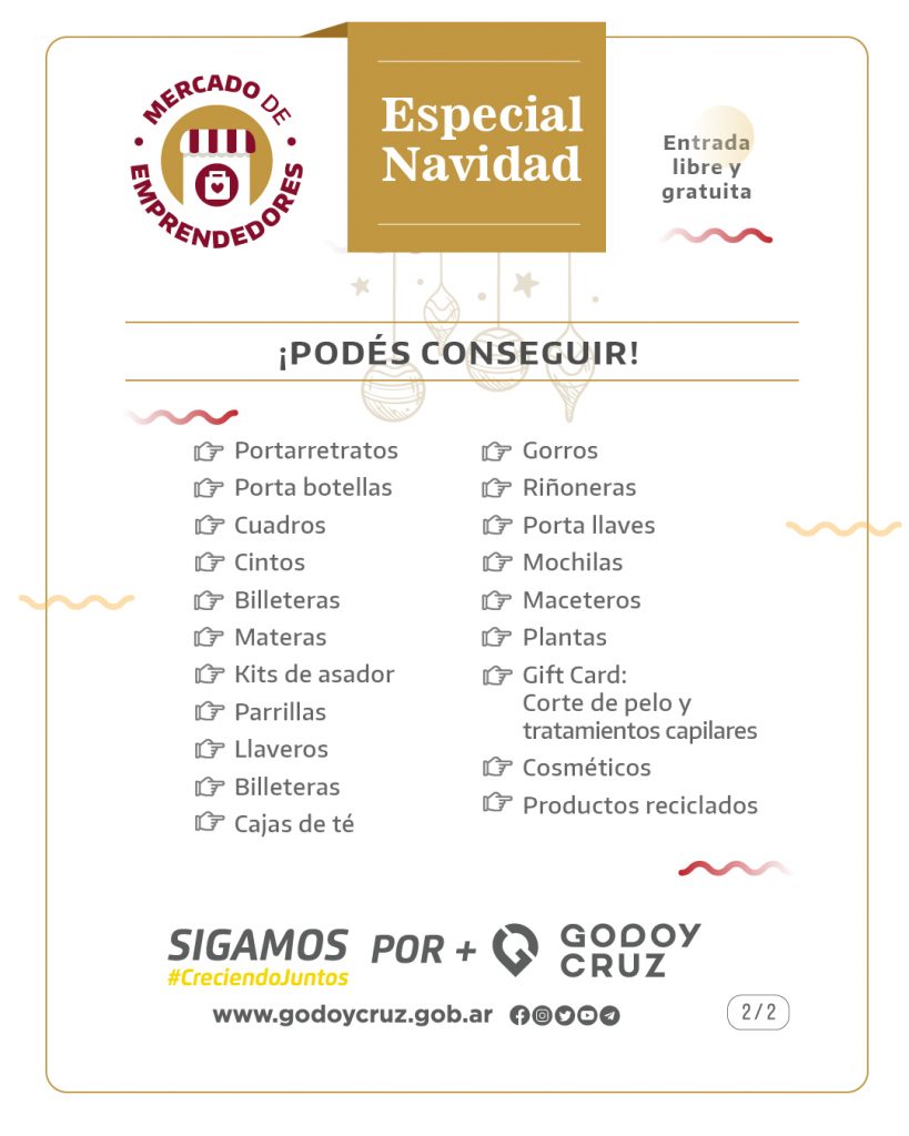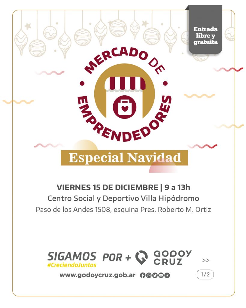 Se acerca la Navidad y Godoy Cruz te ofrece una gran variedad de productos en el Mercado de Emprendedores. Entonces, la cita es el viernes 15, a partir de las 9, en el Club Social y Deportivo Villa Hipódromo