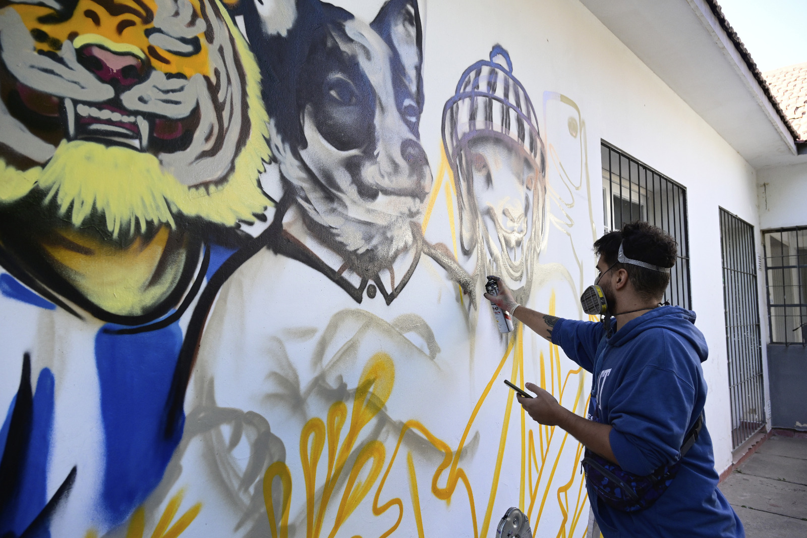 Se pudo disfrutar del arte de Asfáltico, que pintó un graffiti en una de las paredes del patio.