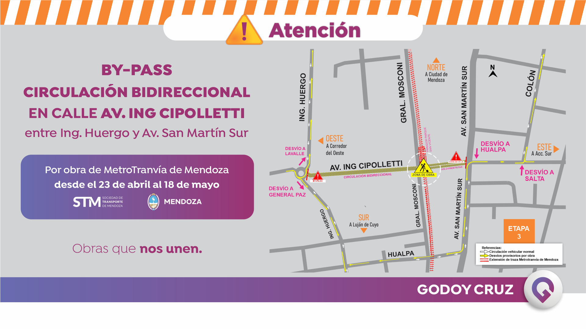 Por otro lado, la calle Cipolletti, entre Huergo y San Martín Sur, estará interrumpida a partir del martes 23.
