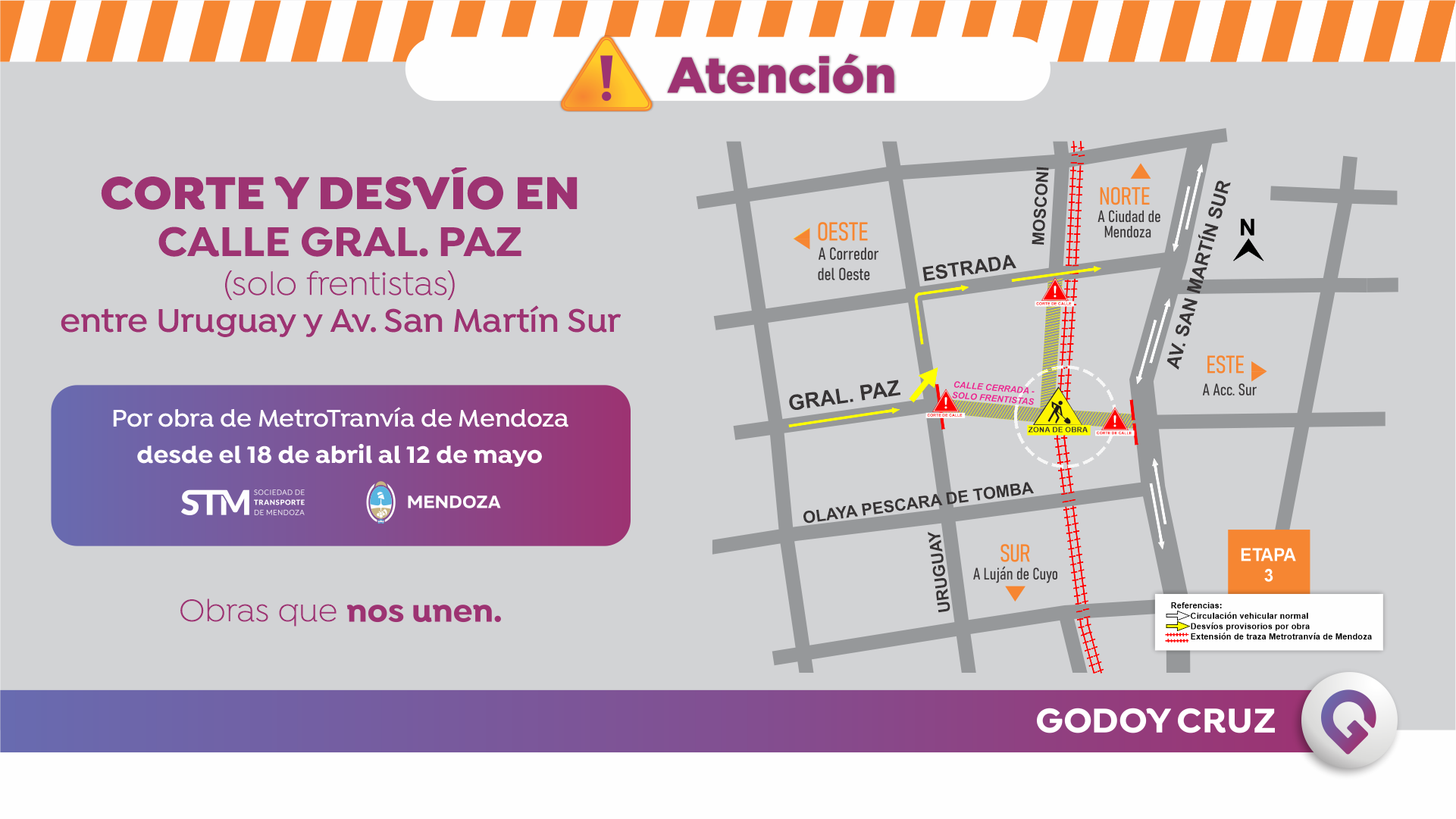 Desde el 18 de abril, la calle General Paz, entre Uruguay y San Martín Sur, estará cortada al tránsito vehicular.