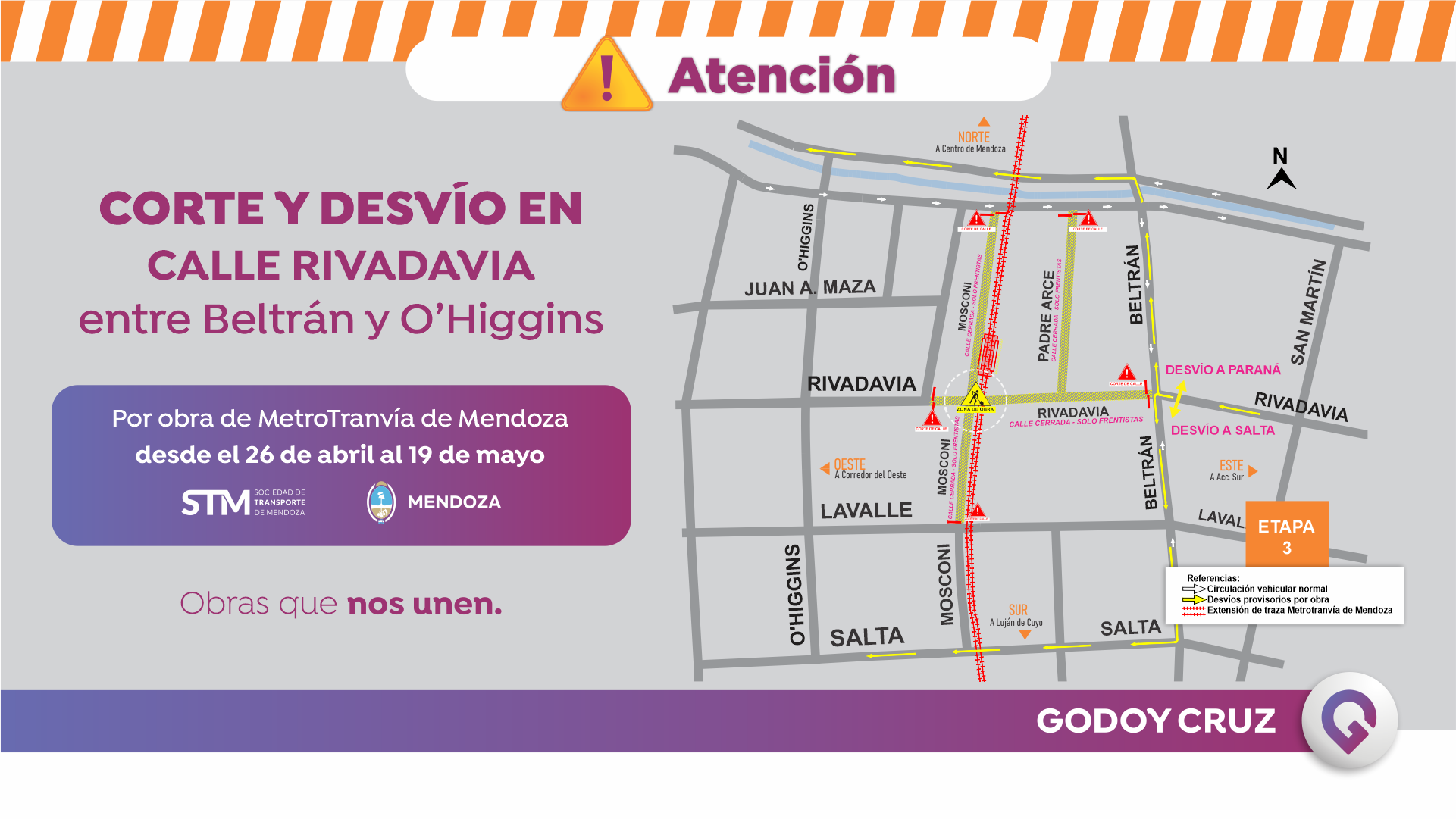 Finalmente, el viernes 26 se producirá el último corte de la segunda etapa de obras. Será en Rivadavia, entre Beltrán y O´Higgins.