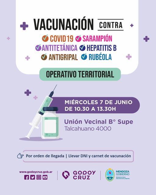 Los operativos territoriales se realizan en distintos puntos del departamento. Este miércoles se ubicarán en la Unión Vecinal del barrio SUPE, Talcahuano 4000, de 10 a 12
