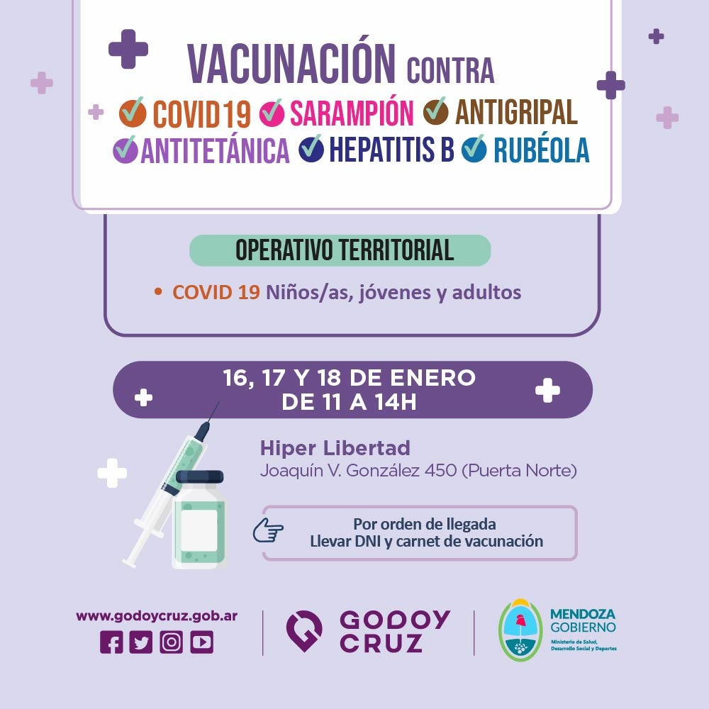 Además, la atención es por orden de llegada y quienes asistan deberán llevar DNI y carnet de vacunación.