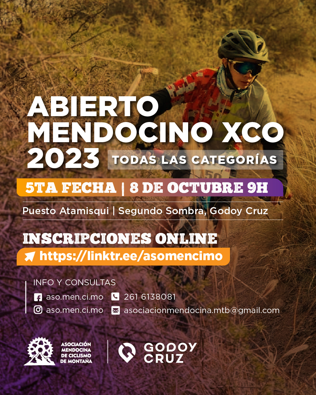 El piedemonte godoicruceño será el lugar elegido para esta clásica competencia, desde las 9. Es importante destacar que estará abierta para todas las edades. Las inscripciones serán a través de la página de la Asociación Mendocina de Ciclismo de Montaña, quienes organizan y fiscalizan.