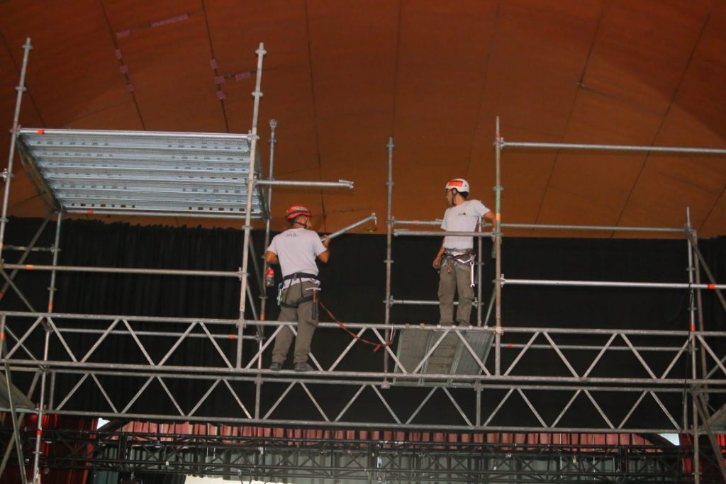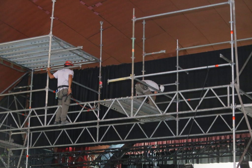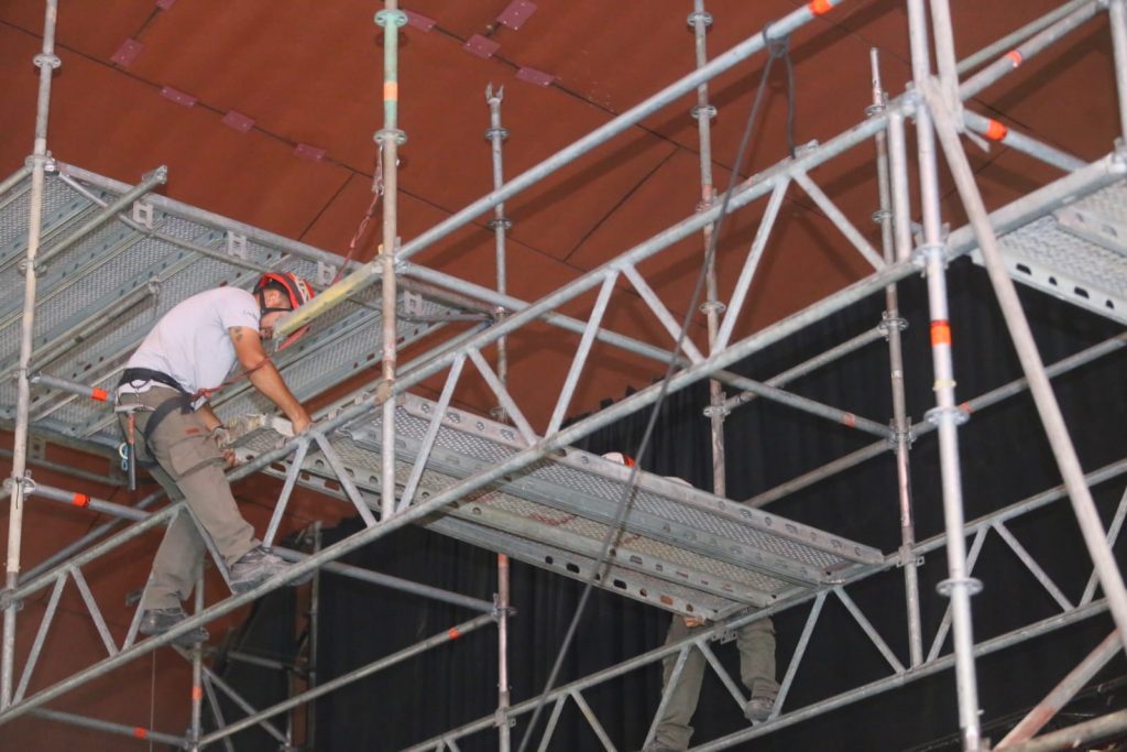 Por eso, Héctor Rosas, director de Cultura del Departamento, dio detalles sobre los arreglos que están realizando. «Estamos reparando, acondicionando y reforzando todo el techo acústico de la sala. Para ello se ha montado el sistema Layher», explicó Rosas.