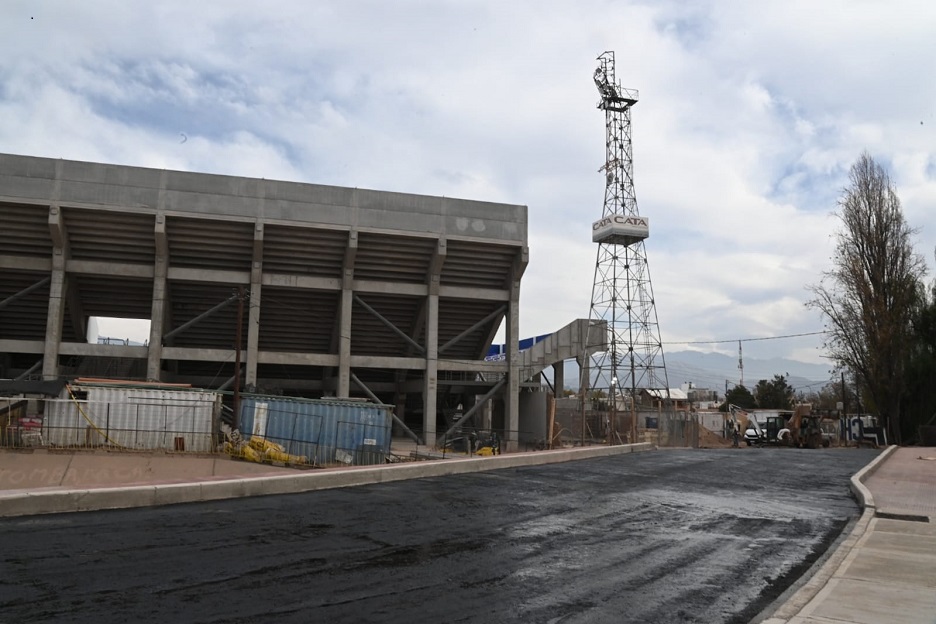 Avanza la pavimentación de los nuevos tramos de las calles Lencinas y Mitre, en las cercanías del nuevo estadio