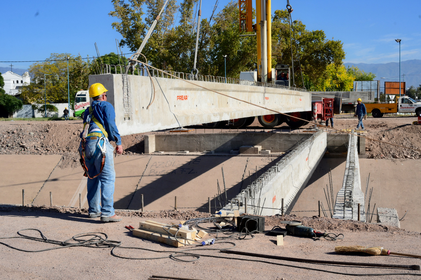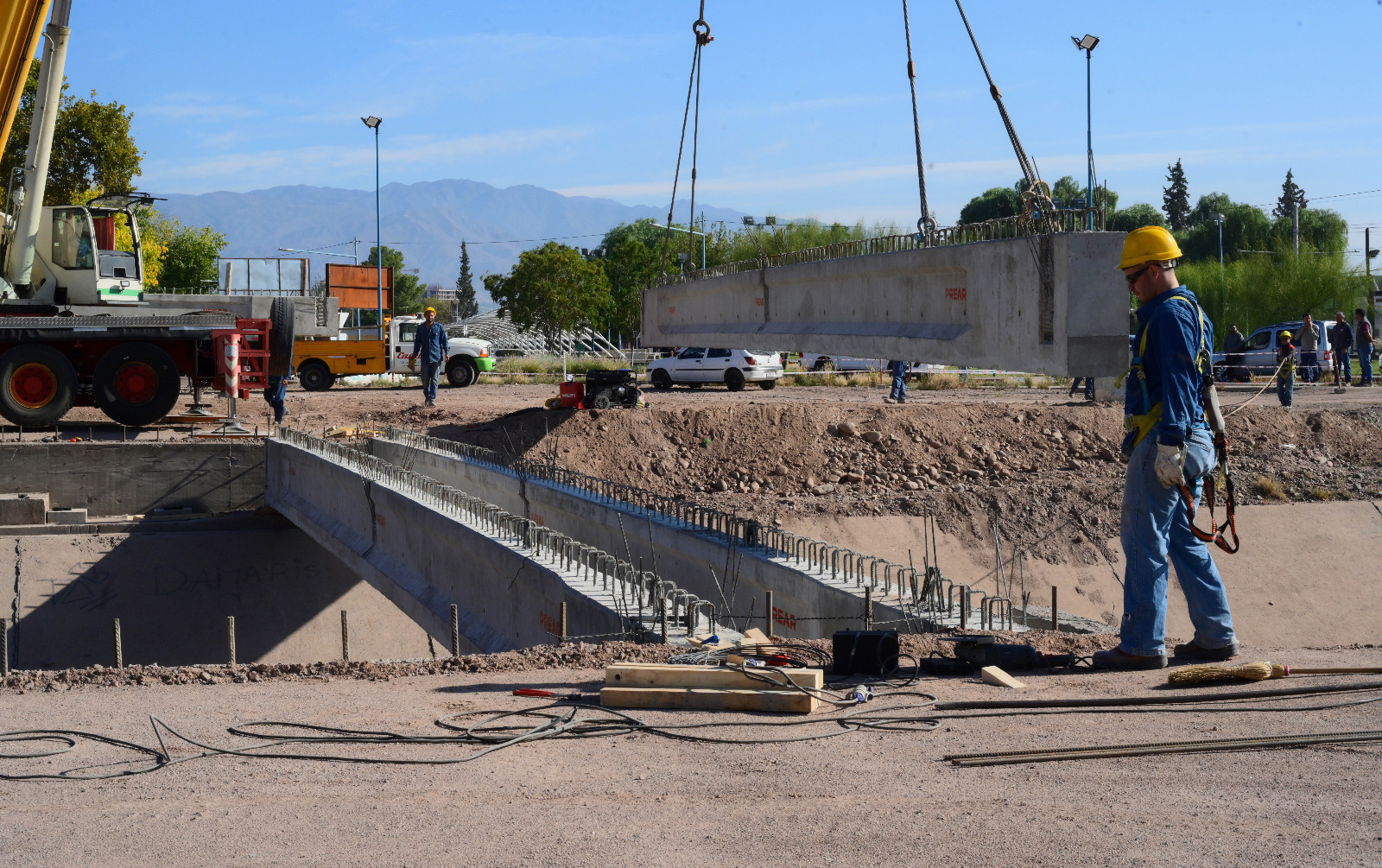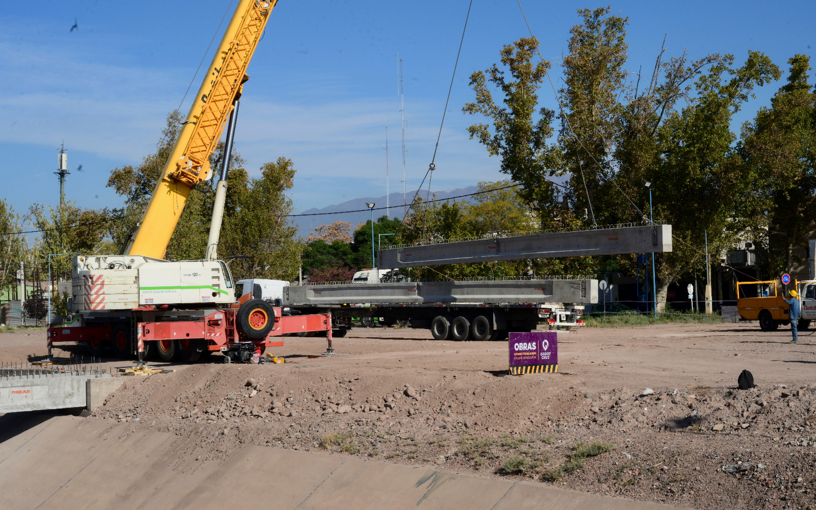 Desde esta mañana se están colocando las vigas del puente que desembocará en sentido este-oeste. Lo hará en la rotonda proyectada, que permitirá distribuir el tránsito vehicular. Por un lado, hacia la nueva traza de calle Mitre, o para continuar por la misma arteria hacia Remedios de Escalada.