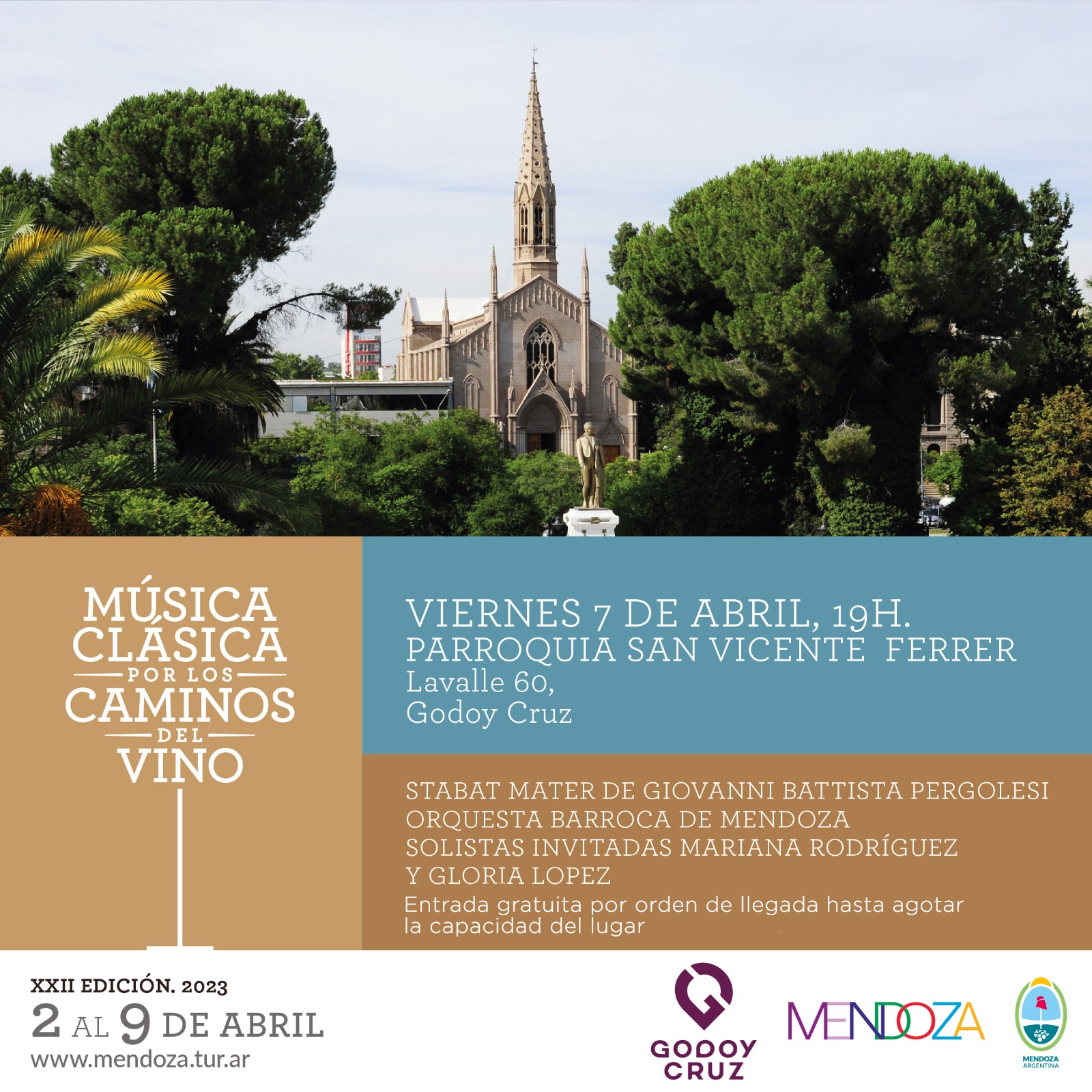 En tanto el viernes 7, a las 19, se presentará la Orquesta Barroca de Mendoza en la Parroquia San Vicente Ferrer, Lavalle 60. El elenco dirigido por Mariano Peralta, contará con las solistas invitadas Mariana Rodríguez y Gloria López. La obra es Stabat Mater, de Giovanni Battista Pergolesi y la entrada es gratuita y por orden de llegada, hasta agotar la capacidad del lugar.