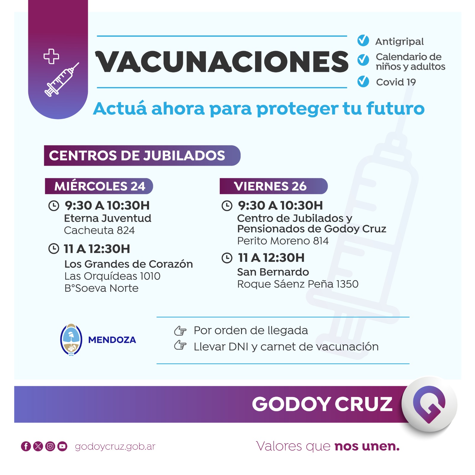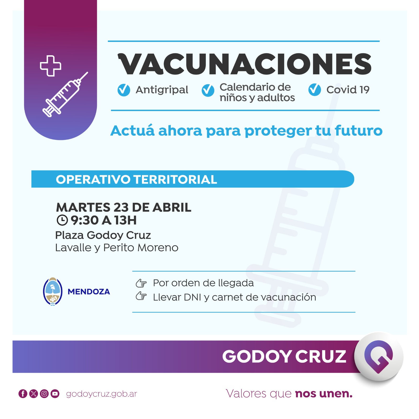 Es por ello que Godoy Cruz adhiere con un operativo territorial de vacunación. El mismo iniciará el lunes 22, en el horario de mañana, en distintos puntos del departamento.