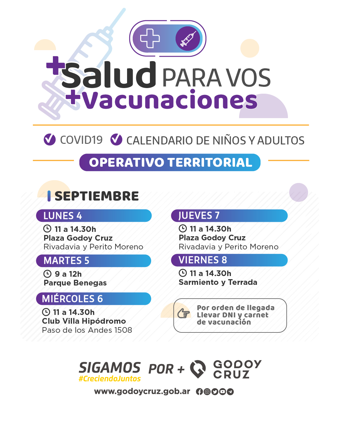 Esta acción territorial es por orden de llegada y quienes asistan deberán llevar DNI y carnet de vacunación.