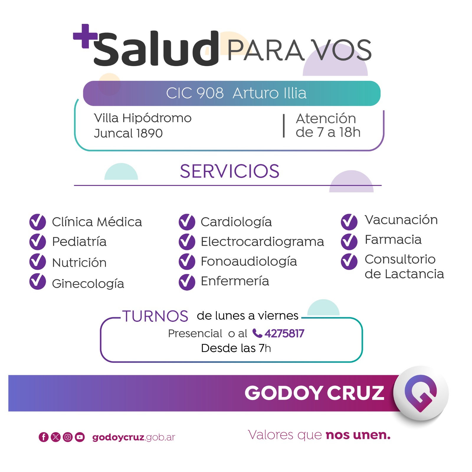 En este lugar, los turnos se pueden obtener en forma presencial, de lunes a viernes, a las 7, o vía telefónica llamando al 4275817.