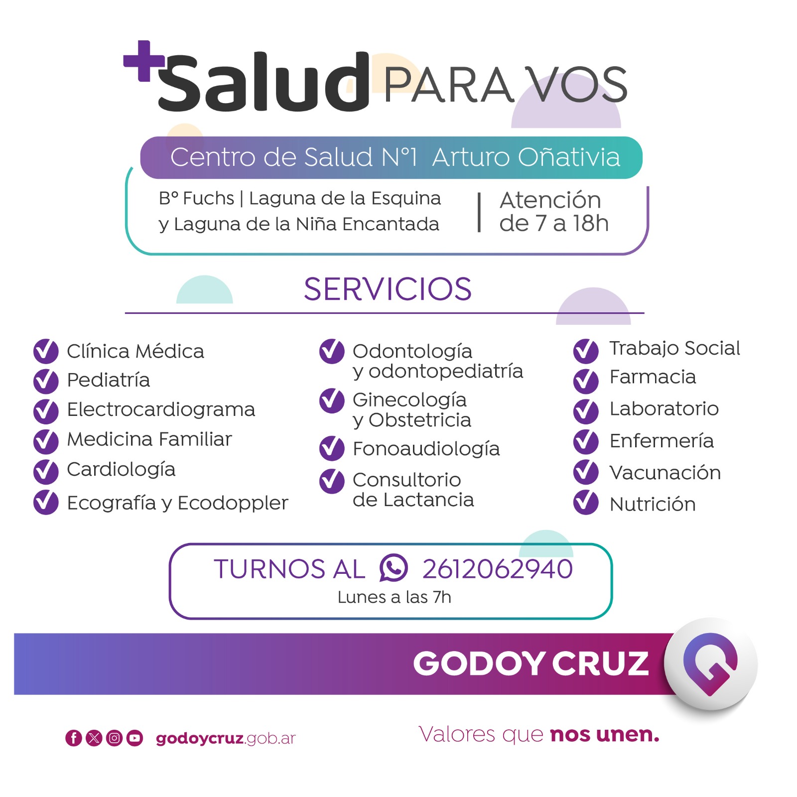 Las personas que deseen solicitar turno, deberán comunicarse los lunes, a las 7, a través de mensaje de Whatsapp al 261 2062940.