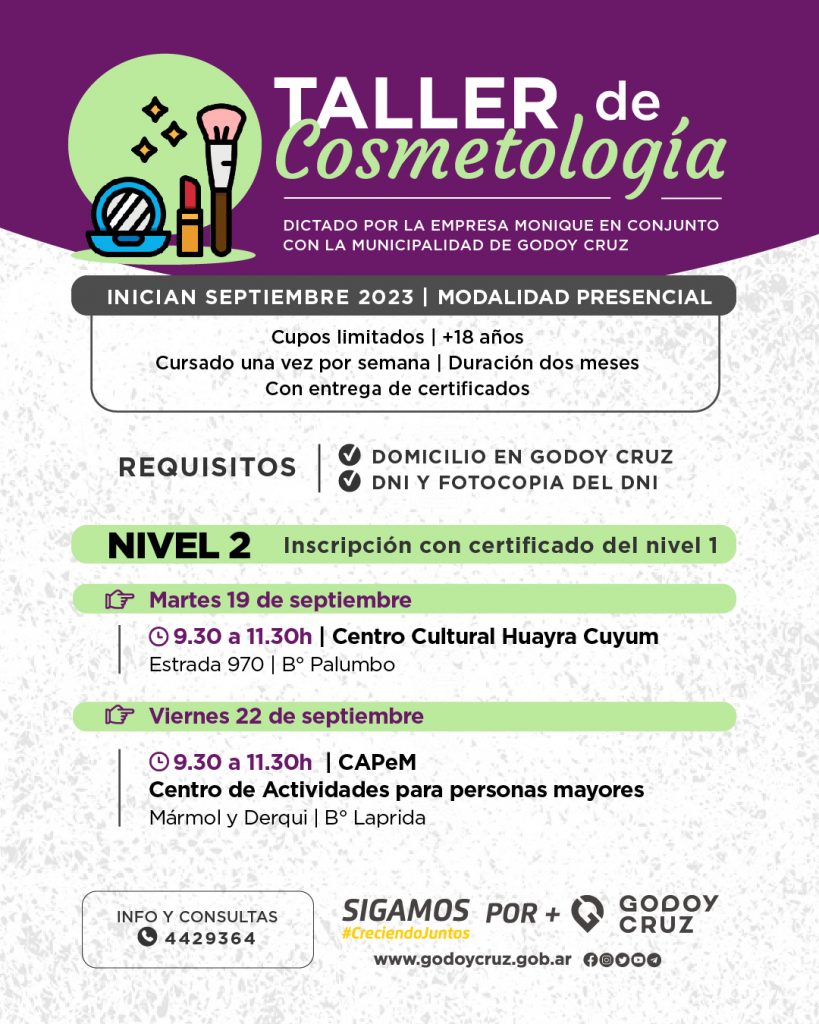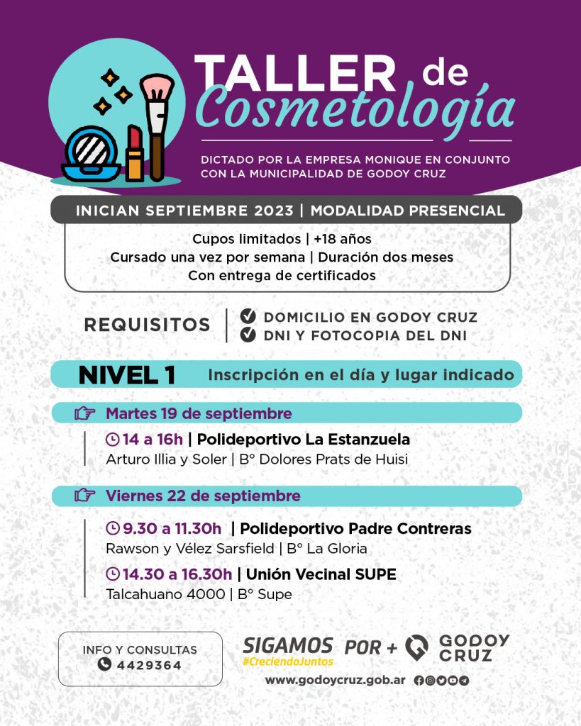 La próxima semana iniciará el taller de cosmetología gratuito en distintos lugares del Departamento. Las personas interesadas deberán asistir el día y a la hora informada para inscribirse y comenzar