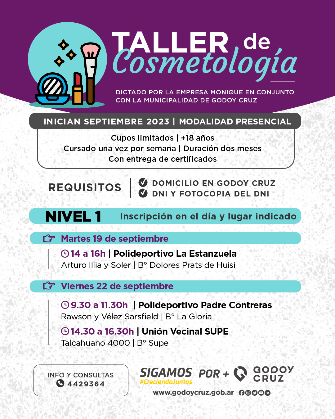 Es importante asistir con DNI y fotocopia, que acredite domicilio en Godoy Cruz. Al finalizar la propuesta de capacitación se entregarán los certificados correspondientes.