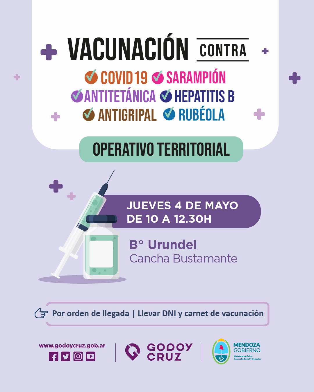 Además, la atención es por orden de llegada y quienes asistan deberán llevar DNI y carnet de vacunación.