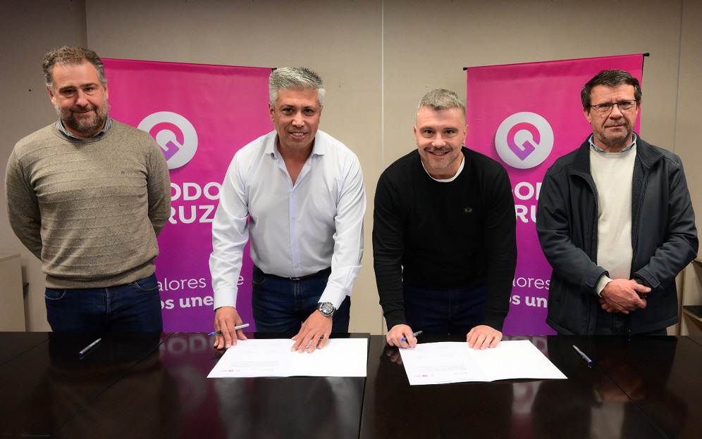Alejandro Zlotolow, Gustavo Aguilera, Diego Costarelli y Leonardo Luconi, durante la firma del convenio